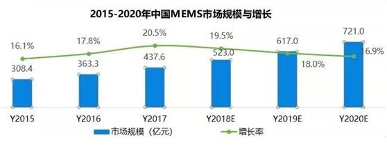 Yole Developement 數(shù)據(jù)顯示,全球MEMS傳感器產(chǎn)品需求近年增勢迅猛,2017年MEMS傳感器市場規(guī)模為437.6億元,平均以超過15%的增長率增長,2020年預(yù)計將達(dá)到721億元。