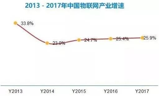 物聯(lián)網(wǎng)發(fā)展已經(jīng)成為國家層面技術(shù)及產(chǎn)業(yè)創(chuàng)新的重點方向,推進物聯(lián)網(wǎng)產(chǎn)業(yè)化、規(guī);l(fā)展的技術(shù)環(huán)境已基本具備,為了保障物聯(lián)網(wǎng)產(chǎn)業(yè)化規(guī);l(fā)展,尤其在技術(shù)標(biāo)準(zhǔn)規(guī)范、自主知識產(chǎn)權(quán)、信息安全等方面相關(guān)政策成為加快推進物聯(lián)網(wǎng)發(fā)展的主要動力之一。近幾年中國物聯(lián)網(wǎng)產(chǎn)業(yè)增速都在20%以上,2017年,中國物聯(lián)網(wǎng)市場規(guī)模超過10000億元。