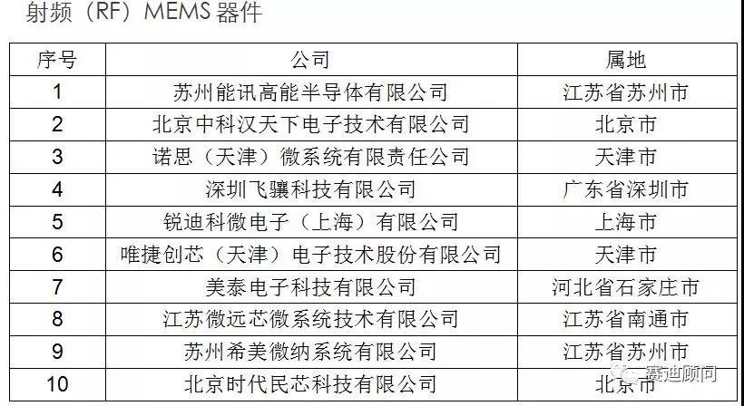 國內(nèi)MEMS細分領(lǐng)域優(yōu)秀企業(yè)(排名不分先后)