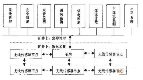 前我國煤礦行業(yè)信息化水平較低,信息技術(shù)應(yīng)用不平衡。井下連采工作面由于設(shè)備較多,各設(shè)備隨機(jī)獨(dú)立作業(yè),造成互相之間信息不溝通,更難以實(shí)現(xiàn)綜合數(shù)據(jù)網(wǎng)絡(luò)管理,從而限制了礦井自動化網(wǎng)絡(luò)技術(shù)對該地區(qū)的輻射,這在一定程度上制約著煤礦安全生產(chǎn)工作。基于上述原因,本文作者設(shè)計(jì)了一個基于無線傳感器網(wǎng)絡(luò)的煤礦安全監(jiān)控系統(tǒng),可以對井下環(huán)境參數(shù)和工況參數(shù)進(jìn)行采集,并把采集到的參數(shù)實(shí)時(shí)送往井上的計(jì)算機(jī)進(jìn)行顯示、控制和超限報(bào)警等處理。