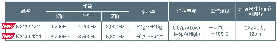 KX132-1211可檢測的頻段高達(dá)4,200Hz、加速度(g)范圍寬達(dá)±2g~±16g,高端產(chǎn)品KX134-1211可檢測的頻段高達(dá)8,500Hz、加速度(g)范圍寬達(dá)±8g~±64g。另外,相比以往產(chǎn)品最高85℃的工作溫度,這兩款產(chǎn)品在高達(dá)105℃的環(huán)境下也可正常工作。產(chǎn)品陣容不僅支持高溫工作,而且支持的頻率和加速度檢測范圍廣,因此非常適用于工業(yè)設(shè)備的電機(jī)振動分析等機(jī)器健康監(jiān)測用途。