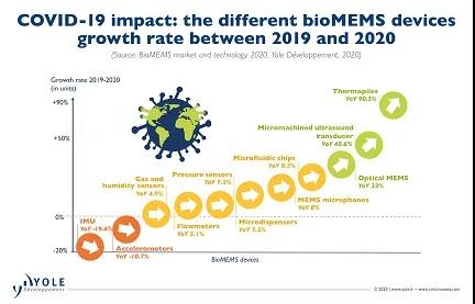 生物MEMS設(shè)備定義為集成到醫(yī)療設(shè)備中并用于IVD和生命科學(xué)的MEMS傳感器和微流控設(shè)備,2019年的市場規(guī)模為37億美元,預(yù)計到2025年將達到63億美元,2019年至2025年的復(fù)合年增長率為9.2%。
