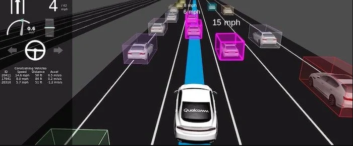 演示了Snapdragon Ride平臺的仿真,據(jù)報(bào)道該平臺可以提供道路可視化。圖片記入高通公司