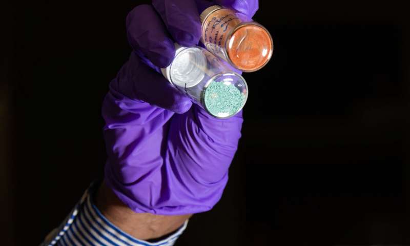 金屬有機框架材料類似于海綿,用于將捕獲的PFOS靶向微流板內(nèi)的小探針。圖片來源:Andrea Starr | PNNL