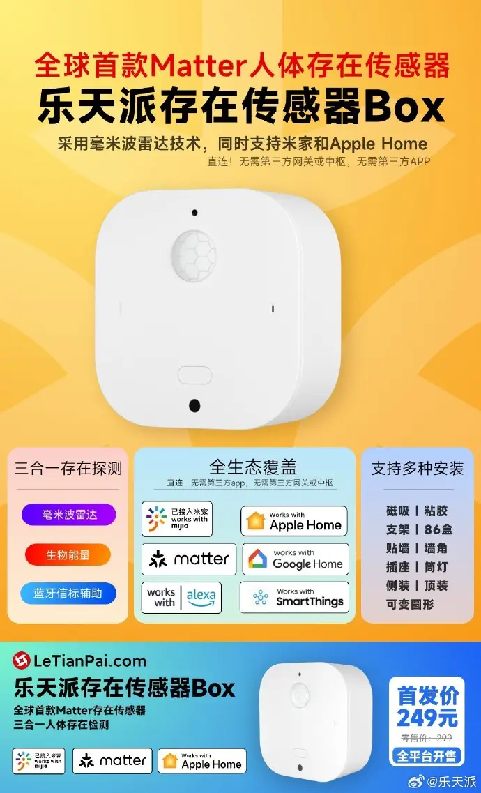 - 樂天派人體存在傳感器 Box 上市,首發(fā)價(jià) 249 元