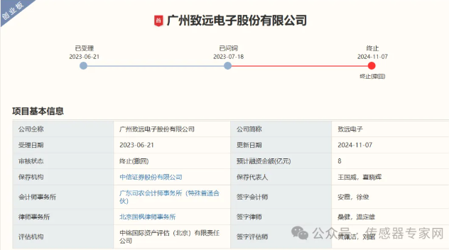 隨著經(jīng)濟(jì)環(huán)境的變化和金融政策的收窄,2024年以來,已有多家傳感器企業(yè)IPO終止。 11月7日,深圳證券交易所公告顯示,又有一家中國(guó)傳感產(chǎn)業(yè)鏈知名企業(yè)——廣州致遠(yuǎn)電子股份有限公司(下文簡(jiǎn)稱“致遠(yuǎn)電子”)IPO終止。 從上市信息看,致遠(yuǎn)電子于2023年6月21日向深交所提交IPO申請(qǐng)獲受理,2023年7月18日獲問詢,并于2024年11月7日終止IPO審核,終止原因?yàn)椤皬V州致遠(yuǎn)電子股份有限公司、保薦人撤回發(fā)行上市申請(qǐng)”。本次致遠(yuǎn)電子IPO的保薦機(jī)構(gòu)