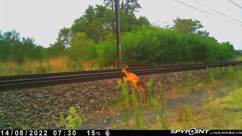 狍子穿越鐵路,由現(xiàn)場傳感器拍攝并通過人工智能自動識別。信用:TerrOïko