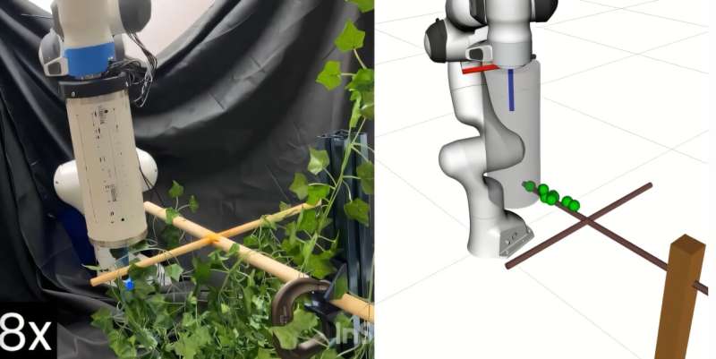 “農(nóng)業(yè)場(chǎng)景中的操作之所以難度大,原因之一在于環(huán)境中存在大量遮擋物 —— 葉片隨處懸掛,這會(huì)屏蔽許多視覺輸入信息! 李夢(mèng)洋解釋道。以果園為例,“果實(shí)本身可能被部分遮擋,機(jī)械臂要抵達(dá)果實(shí)所在位置的移動(dòng)路徑也可能被嚴(yán)重遮擋!