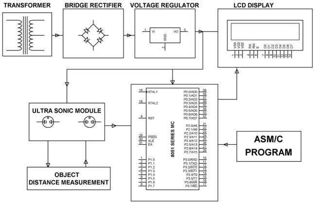 在無(wú)法到達(dá)的區(qū)域進(jìn)行距離測(cè)量是超聲波傳感器的典型應(yīng)用。該電路由超聲模塊,LCD顯示屏和微控制器組成。超聲模塊與微控制器接口,并且該超聲換能器由發(fā)射器和接收器組成。