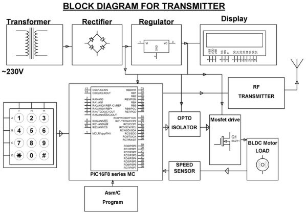 基于PIC微控制器的項(xiàng)目,使用無(wú)線技術(shù)在工業(yè)中實(shí)現(xiàn)多個(gè)電機(jī)的速度同步是速度傳感器的典型應(yīng)用。行業(yè)中的多種電動(dòng)機(jī)之一被認(rèn)為是充當(dāng)發(fā)送器的主電動(dòng)機(jī),其余電動(dòng)機(jī)充當(dāng)接收器,它們將跟隨主電動(dòng)機(jī)的速度。本項(xiàng)目中使用的主電機(jī)和接收電機(jī)是BLDC電機(jī),它們是通過(guò)PWM控制和射頻無(wú)線通信模式進(jìn)行控制的。