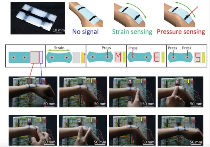 在此演示中,壓力和應(yīng)變感測由每個動作獨立控制。圖片由《科學(xué)報告》提供