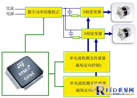 圖1:STM32F103HD可以同時處理雙電機(jī)控制和數(shù)字PF