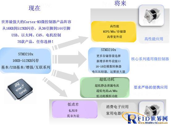 從功率開關(guān)分立器件,到復(fù)雜的系統(tǒng)芯片,意法半導(dǎo)體承諾以其獨(dú)有的產(chǎn)品組合長期支持電機(jī)控制市場。STM32微控制器產(chǎn)品線將繼續(xù)沿四個新方向部署,如圖3所示,其中兩個方向適用于電機(jī)控制。第一個產(chǎn)品線將面向低成本市場,開發(fā)低端的16位電機(jī)控制微控制器。另一個產(chǎn)品線以高性能為訴求,面向需要更高處理性能、更大存儲容量和高帶寬接口的應(yīng)用。如此寬廣的產(chǎn)品組合結(jié)合Cortex-M3內(nèi)核,勢必確立STM32架構(gòu)適用于現(xiàn)在和未來電機(jī)驅(qū)動的多功能性。
