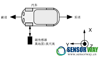 對(duì)于車輛方向與類型檢測,可以將磁傳感器放置在路邊,也可以埋在地底。沿著被檢測的車道即可。三軸磁傳感器X、Y、Z軸方向定義如圖2所示。