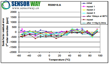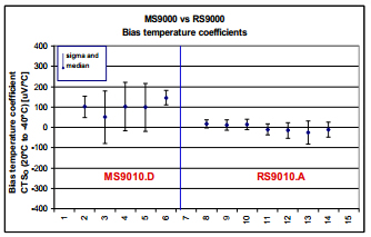 這幾張圖清楚地表明,相對于性能良好的MS9010.D產(chǎn)品,RS9010.A是一個真正的改進。下圖進一步表明了在整個溫度范圍內(nèi),RS9010.A 長期溫度系數(shù)的性能有所改善。