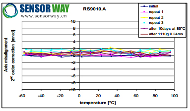 圖 5: 在整個溫度范圍的軸偏穩(wěn)定性(經(jīng)過2 階多項式校正之后), 沖擊和加速老化