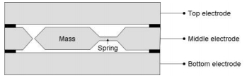加速度傳感器的核心器件是電容式體硅微機(jī)械傳感器。COLIBRYS制造加速度傳感器的關(guān)鍵技術(shù)在于三層硅晶片結(jié)構(gòu)。