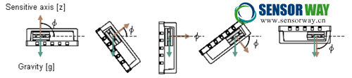 圖 3: 在不同角度情況下的MS9002.D加速度傳感器