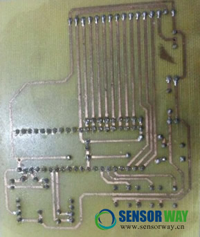 制作 PCB 板時注意布線不要過于緊湊,在焊錫時候容易焊在一起導(dǎo)致短路,本次設(shè)計的 PCB 板是簡易 PCB 板, .將轉(zhuǎn)印紙有圖的一面緊貼覆銅板有銅一面, 設(shè)法將紙固定(如用透明膠等) ;銅面朝上,水平放入熱轉(zhuǎn)印機,稍用力送入,感覺板被夾住后放手;PCB 板從機器另一邊出來后,緩慢將轉(zhuǎn)印紙分離,并檢查轉(zhuǎn)印結(jié)果是否符合要求,若出現(xiàn)斷線等情況,可用油性筆補上。然后對銅板進行腐蝕只有電路上附有銅板,清洗就是要將 PCB 板上的墨粉去掉,露出光潔的銅線;松香是助焊劑,助焊劑的作用是輔助熱傳導(dǎo)、去除氧化物、降低被焊接材質(zhì)表面張力、去除被焊接材質(zhì)表面油污、增大焊接面積、防止再氧化等,在這幾個方面中比較關(guān)鍵的作用有兩個就是:去除氧化物與降低被焊接材質(zhì)表面張力。