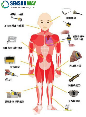 測(cè)壓傳感器是將力或重力轉(zhuǎn)化為電信號(hào)的換能器。測(cè)壓傳感器應(yīng)用在醫(yī)學(xué)中被稱為醫(yī)用測(cè)壓傳感器,它們都必須高度精確并緊湊包裝,以方便攜帶,特別是器械要與病人直接連接時(shí)。如果傳感器用于某醫(yī)療器械集成的監(jiān)測(cè)儀器內(nèi),要使用不銹鋼和陽(yáng)極化鋁等標(biāo)準(zhǔn)包裝材料。如果設(shè)備與人體或液體直接接觸,則可使用可高壓蒸汽滅菌的特種不銹鋼或一次性傳感器。下圖展示了測(cè)壓傳感器在醫(yī)療上的應(yīng)用。