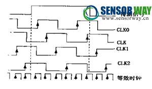 由于傳感器器件有效長度為150mm,則最長時差 為 Tmax= 15mm/2800m (s)= 53 57微秒系統(tǒng)采用 50MHz 時鐘,則最大計數(shù)值為Mmax≈2680,為了便于與數(shù)字處 理系統(tǒng)接口,采用八位計數(shù)器異步串連計數(shù),則對于每 一路時鐘需要4個計數(shù)器。在系統(tǒng)讀取時,依次從高到 低讀取8位計數(shù)值。由于時鐘為5(MHz,產(chǎn)生90°的相 移需要的時間延時為5ns。