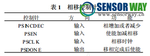 數(shù)字相移脈寬時間測量的基本點在于時鐘信號的 相位延遲,而相位延遲在實際實現(xiàn)中是通過時間波形 的延遲來實現(xiàn),因而實現(xiàn)準確的和確定的電路延遲對 于該模型的完整性有重要作用。實現(xiàn)延時有多種方法, 如采用分立元件實現(xiàn),但這種方法存在電路復(fù)雜可靠 性差等缺點。文中采用FPGA器件實現(xiàn)高精度的延時 具有電路簡單、功能強、修改方便和可靠性高等優(yōu)點。 RTEX-II系列FPGA器件有4~12個數(shù)字時鐘管理 器DCM,每個DCM都提供了應(yīng)用范圍廣、功能強大 的時鐘管理功能。如時鐘去時滯、頻率合成及移相等。 它利用延時鎖定環(huán)DLL,消除時鐘焊盤和內(nèi)部時鐘引 腳間的擺動,同時它還提供多種時鐘控制技術(shù),實現(xiàn)時 鐘周期內(nèi)任意位置的精確相位控制,非常適合時序微 調(diào)應(yīng)用,對設(shè)置和保持時序?qū)史浅jP(guān)鍵。DCM相移 具有可變相移和固定相移兩種模式。設(shè)計中,由于延時 量由用戶外部輸入提供,故采用可變相移模式。在可變 相移模式中,用戶可以動態(tài)地反復(fù)將相位向前或向后 移動輸入時鐘周期的1/256?勺兿嘁颇J街,相移控制針如表1所示。