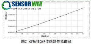 用于線性磁場測量的GMR傳感器應(yīng)具有良好的線性度,可測量正反兩個(gè)方向的磁場,因此,在測試芯片的選擇上可選擇雙極性的GMR傳感器直接進(jìn)行測試或選擇單極性的GMR傳感器對其進(jìn)行偏置處理,將其零點(diǎn)抬高。