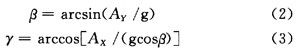 當加速度計被定向,那么它的X和Y軸就和地球表面平行可用來作為具有翻滾和傾斜兩個軸的雙軸斜度傳感器,被測物體的俯仰角記為γ和橫滾角β。將磁阻傳感器的3個敏感軸沿載體的3個坐標軸安裝,分別測量地磁場磁感應強度H在載體坐標系3個坐標上的投影分量(HX,HY,HZ),然后利用俯仰角和橫滾角進行姿態(tài)解算就可以得到電子羅盤的方位角。