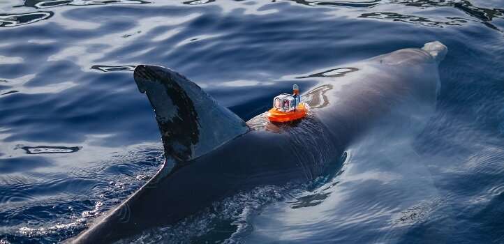 鹽度傳感器與超低功率水生標(biāo)簽集成在一起,并與寬吻海豚相連。這張照片是在西班牙瓦倫西亞的2018年研討會(huì)“海洋2.0:探索海洋動(dòng)物”中拍攝的。圖片來(lái)源:Robert Romosan