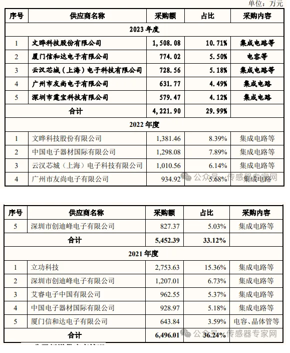 據(jù)招股書顯示,三大業(yè)務(wù)板塊中,嵌入式板卡及模塊產(chǎn)品線近三年占比均超過40%,是致遠(yuǎn)電子營(yíng)收支柱,2023年度營(yíng)收1.93億元;CAN-bus 總線通訊類產(chǎn)品線營(yíng)收占比30%左右,為第二大產(chǎn)品線,2023年度營(yíng)收1.54億元;測(cè)試測(cè)量分析儀器產(chǎn)品線占比20%左右,2023年度營(yíng)收1.23億元。 主要財(cái)務(wù)指標(biāo)方面,2021-2023年報(bào)告期內(nèi),公司營(yíng)業(yè)收入分別為 41,460.67 萬元、48,451.54 萬元和 47,731.37 萬元,實(shí)現(xiàn)凈利潤(rùn)分別為 12,586.98 萬元、15,758.05 萬元和12,090.00 萬元。 總體上看,致遠(yuǎn)電子營(yíng)收呈上升趨勢(shì),其中2023年?duì)I收略有下滑,招股書稱受新能源汽車、光伏儲(chǔ)能等下游行業(yè)需求景氣等因素影響,且2022年度CAN-bus總線通訊類產(chǎn)品線、測(cè)試測(cè)量分析儀器產(chǎn)品線收入增長(zhǎng)較快。 本次IPO中,致遠(yuǎn)電子擬向社會(huì)公眾公開 發(fā)行人民幣普通股不超過 2,000.00 萬股,擬募集資金為8億元,將投入到新一代工業(yè)智能物聯(lián)產(chǎn)品研發(fā)項(xiàng)目 、EsDA 平臺(tái)升級(jí)研發(fā)項(xiàng)目、制造中心升級(jí)項(xiàng)目以及補(bǔ)充流動(dòng)資金。 值得一提的是,致遠(yuǎn)電子是國(guó)內(nèi)少數(shù)自建物聯(lián)網(wǎng)操作系統(tǒng)及開發(fā)生態(tài)的中國(guó)物聯(lián)網(wǎng)企業(yè),其物聯(lián)網(wǎng)生態(tài)稱為EsDA生態(tài)(Embeded system Design Automation,嵌入式系統(tǒng)設(shè)計(jì)自動(dòng)化技術(shù)生態(tài)),包括AWorksLP 物聯(lián)網(wǎng)實(shí)時(shí)操作系 統(tǒng)、AWStudio 嵌入式應(yīng)用可視化開發(fā)平臺(tái)、AXPI 資源管理平臺(tái)、AWTK GUI 引擎及ZWS物聯(lián)網(wǎng)云平臺(tái)等自研技術(shù)平臺(tái):致遠(yuǎn)電子EsDA生態(tài)涵蓋技術(shù)優(yōu)勢(shì)有: 目前,致遠(yuǎn)電子的產(chǎn)品已進(jìn)入比亞迪、寧德時(shí)代、陽光電源、天地科技、魚躍醫(yī)療等知名行業(yè)客戶供應(yīng)鏈體系 ,其中,近三年,比亞迪均是致遠(yuǎn)電子前五大客戶之一。 此外,致遠(yuǎn)電子前五大客戶還有北漢科技、微丹電子、京東數(shù)智工業(yè)、旭儀科技等。 采購(gòu)方面,致遠(yuǎn)電子采購(gòu)原料來自NXP、TI、ADI、ISSI、XILINX、納芯微、思瑞浦、瑞芯微、復(fù)旦微、興森科技等國(guó)內(nèi)外知名半導(dǎo)體廠商或其代理商。 致遠(yuǎn)電子主要采購(gòu)產(chǎn)品為集成電路,前五大供應(yīng)商涵蓋多家知名電子元件分銷商,包括文曄科技、信和達(dá)電子、云漢芯城、中電器材(中電港)等。 實(shí)控人夫婦IPO前夕已協(xié)議離婚,三輪問詢,獨(dú)立性等多個(gè)問題被審議 據(jù)招股書股權(quán)結(jié)構(gòu)顯示,目前致遠(yuǎn)電子實(shí)控人為周立功、陳智紅,二人合計(jì)占據(jù),持有發(fā)行人 76.96%的股權(quán),為發(fā)行人控股 股東、實(shí)際控制人,致贏投資、立功科技、廣州求遠(yuǎn)系實(shí)際控制人的一致行動(dòng)人。 其中,周立功、陳智紅直接持有發(fā)行人 35.81%、 31.84%的股權(quán),通過持有致贏投資、立功科技、廣州求遠(yuǎn)的股權(quán)而間接持有發(fā)行人 2.68%、6.63%的股權(quán)。 此前,周立功、陳智紅二人系夫婦關(guān)系,于 2022 年 3 月 2 日協(xié)議離婚,但通過簽署《一致行動(dòng)協(xié)議》,保證了公司控制權(quán)結(jié)構(gòu)的穩(wěn)定性。 值得關(guān)注的是,致遠(yuǎn)電子曾是立功科技的全資子公司,立功科技于1999年成立,2020年7月立功科技沖擊上市,后撤回IPO申請(qǐng)。 此后,致遠(yuǎn)電子從立功科技脫離,尋求獨(dú)立上市:2022年5月,經(jīng)股東一致同意后公司正式變更為現(xiàn)今的“廣州致遠(yuǎn)電子股份有限公司”。