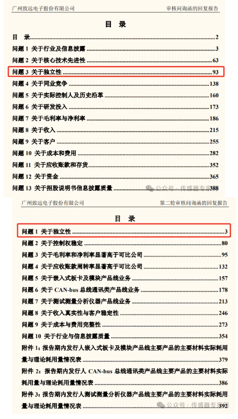 正因?yàn)橹逻h(yuǎn)電子的這段歷史,其獨(dú)立性問題成為致遠(yuǎn)電子本次IPO多輪問詢中都被問到的核心問題。 關(guān)于致遠(yuǎn)電子的獨(dú)立性問題,深交所問詢了關(guān)聯(lián)交易情況、無償受讓立功科技專利情況、任職人員交叉、公用OA系統(tǒng)等多個(gè)問題。 其中,無償受讓立功科技專利方面,回復(fù)函中介紹,2021 年 1 月,公司與立功科技簽署了轉(zhuǎn)讓協(xié)議,立功科技將 16 項(xiàng)專利、22 項(xiàng)軟件著作權(quán)及 6 項(xiàng)商標(biāo)無償轉(zhuǎn)讓給發(fā)行人,這些專利基于致遠(yuǎn)電子的部分技術(shù)積累而形成的通用技術(shù)成果,對(duì)致遠(yuǎn)電子的經(jīng)營(yíng)起輔助銷售的作用,對(duì)于發(fā)行人及立功科技生產(chǎn)經(jīng)營(yíng)的重要性程度均較低,因此,無償轉(zhuǎn)讓對(duì)價(jià)合理,具有商業(yè)合理性和必要性。 任職人員交叉方面,致遠(yuǎn)電子認(rèn)為,該部分人員從立功科技調(diào)整至致遠(yuǎn)電子后,雙方已不存在人員交叉任職的情形,且該部分人員主要從事致遠(yuǎn)電 子相關(guān)產(chǎn)品和技術(shù)的研發(fā)工作,其形成的研發(fā)成果歸屬于致遠(yuǎn)電子。 保持高研發(fā)投入的國(guó)產(chǎn)傳感&物聯(lián)網(wǎng)產(chǎn)業(yè)巨頭,時(shí)機(jī)未到下的主動(dòng)撤回作為國(guó)產(chǎn)傳感及物聯(lián)網(wǎng)產(chǎn)業(yè)鏈的優(yōu)秀企業(yè),致遠(yuǎn)電子本次IPO,如同此前多家傳感器企業(yè)一樣,受到了經(jīng)濟(jì)大環(huán)境和金融政策等諸多因素的困擾。 在招股書的重大事項(xiàng)及風(fēng)險(xiǎn)中,提及產(chǎn)品技術(shù)迭代與創(chuàng)新風(fēng)險(xiǎn)、報(bào)告期前期關(guān)聯(lián)交易規(guī)模相對(duì)較大的風(fēng)險(xiǎn)、原材料價(jià)格波動(dòng)的風(fēng)險(xiǎn)、國(guó)際貿(mào)易摩擦帶來的個(gè)別原材料供應(yīng)風(fēng)險(xiǎn)、關(guān)于實(shí)際控制人控制權(quán)穩(wěn)定的風(fēng)險(xiǎn)。 其中,前期關(guān)聯(lián)交易規(guī)模相對(duì)較大、實(shí)際控制人控制權(quán)穩(wěn)定等問題如前文所述。 此外,在中信證券的保薦書中,亦提及核心技術(shù)失密、核心人才流失、毛利率凈利率下滑等風(fēng)險(xiǎn)問題。 致遠(yuǎn)電子注重研發(fā),其研發(fā)團(tuán)隊(duì)由董事長(zhǎng)、總經(jīng)理周立功直接負(fù)責(zé),報(bào)告期內(nèi),公司研發(fā)費(fèi)用率分別為17.61%、17.76%和20.74%,平均18.7%,保持在了業(yè)內(nèi)較高水平。致遠(yuǎn)電子已經(jīng)構(gòu)建了底層平臺(tái)與具體產(chǎn)品技術(shù) 相結(jié)合的技術(shù)體系,并可以提供 ZWS 物聯(lián)網(wǎng)云平臺(tái)服務(wù),形成從底層到應(yīng)用的完整的工業(yè)智能物聯(lián)技術(shù)體系,其技術(shù)實(shí)力處于國(guó)內(nèi)先進(jìn)水平,部分產(chǎn)品實(shí)現(xiàn)對(duì)國(guó)外廠商的進(jìn)口替代,在業(yè)內(nèi)具有較強(qiáng)的競(jìng)爭(zhēng)力。 來自深交所的第三輪審核問詢函在今年3月份發(fā)出,而隨著市場(chǎng)和環(huán)境的變化,致遠(yuǎn)電子選擇了主動(dòng)撤回IPO申請(qǐng)。 從脫離立功科技獨(dú)立上市,到2023年6月IPO申請(qǐng)獲受理,經(jīng)歷三輪問詢,本次致遠(yuǎn)電子的IPO之旅畫下并不圓滿的句號(hào),時(shí)機(jī)仍然未到。