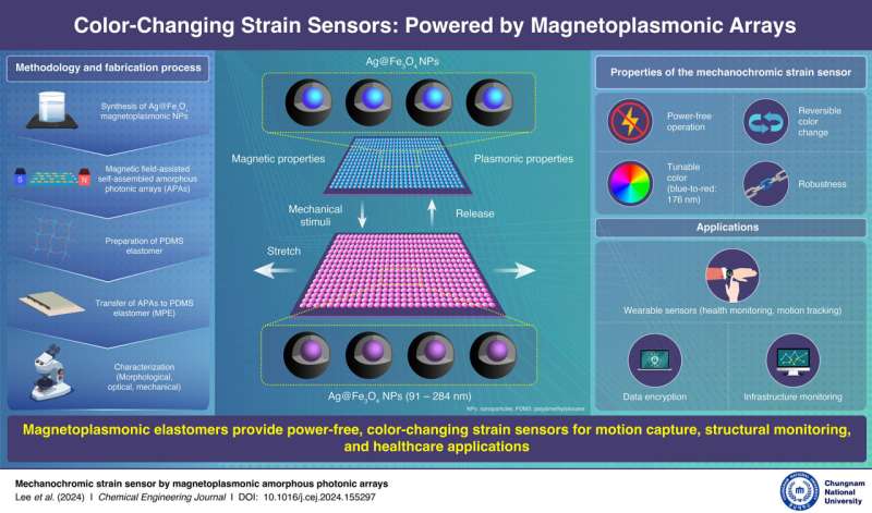 更多信息:Huu-Quang Nguyen 等人,磁等離子體非晶光子陣列的機(jī)械變色應(yīng)變傳感器,化學(xué)工程雜志(2024 年)。DOI: 10.1016/j.cej.2024.155297