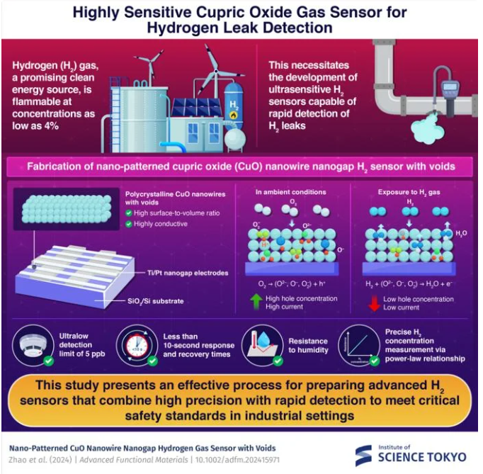 本研究提出了一種制備先進(jìn)氫氣(H₂)傳感器的有效工藝,該傳感器兼具高精度與快速檢測(cè)的特點(diǎn),能夠滿足工業(yè)環(huán)境中的關(guān)鍵安全標(biāo)準(zhǔn)。圖片來(lái)源:東京科學(xué)研究所