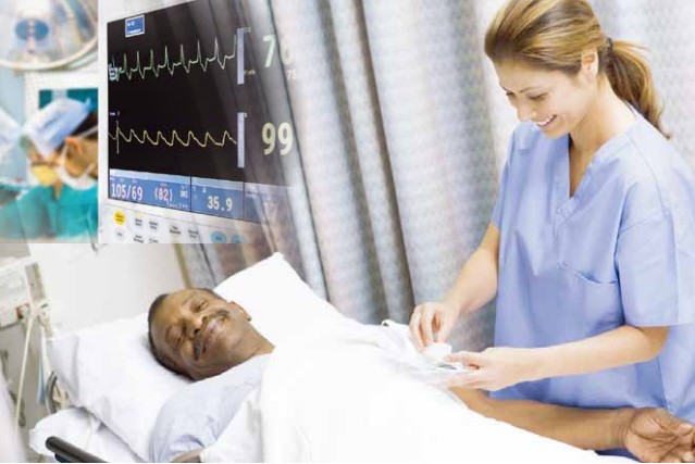 監(jiān)護(hù)儀用于診療環(huán)境(如手術(shù)室、急救室、加護(hù)病房、重癥病房、以及日益普遍的病人家庭),以監(jiān)測和顯示病人身體的各種主要情況,包括心電圖、SpO2(脈搏血氧飽和度)、血壓、呼吸和溫度等。監(jiān)護(hù)儀可以是獨(dú)立儀器,也可以是多參數(shù)儀器。呼吸監(jiān)測顯示有關(guān)呼吸的關(guān)鍵指數(shù)。所用儀器包括二氧化碳分析儀(測量呼吸氣中二氧化碳濃度或分壓力)和肺活量計(jì)(測量呼吸進(jìn)出流量)。血壓監(jiān)測可用插入式的壓力傳感器或無創(chuàng)傷性的血壓袖帶(無創(chuàng)血壓測量)。葡萄糖監(jiān)測是測量間質(zhì)液中的葡萄糖含量。持續(xù)不斷地進(jìn)行這種測量可以檢驗(yàn)血液里的葡萄糖含量對胰島素、運(yùn)動(dòng)、食物和其它因素的反應(yīng)。這種葡萄糖測量器用于重癥病房、手術(shù)室或恢復(fù)室,用來測量病人的血糖含量。