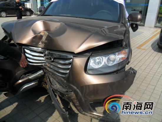 據(jù)車主王先生向南海網(wǎng)記者反映,這輛韓國現(xiàn)代越野車是他去年4月份在海南韓現(xiàn)汽車銷售公司購買的,車身價就達(dá)26萬元。本月15日,王先生在海口市龍昆南路駕車時為了避讓電動車而重重撞上了綠化帶的一株椰子樹。