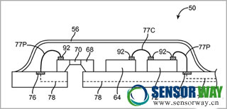 第一項(xiàng)專利名為“帶環(huán)境傳感器的電子設(shè)備”,描述了一種內(nèi)置多個(gè)運(yùn)動(dòng)傳感器的組件。該組件與柔性印刷電路連接,利用內(nèi)置的環(huán)境傳感器測量溫度、壓力、濕度、聲音等數(shù)據(jù)。