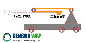 所有的云梯消防車都有一定負(fù)載能力,只有在其負(fù)載范圍內(nèi)才能有效確保工作狀態(tài)的安全性。因此確定特定條件下的負(fù)載能力非常關(guān)鍵。通過(guò)傾角傳感器對(duì)在云梯伸縮臂在不同的舉升高度時(shí)的傾斜角度進(jìn)行測(cè)量和監(jiān)控,并根據(jù)伸縮臂的長(zhǎng)度就能確定在不同高度和傾斜角情況下云梯相應(yīng)的負(fù)載能力,確保不會(huì)發(fā)生超重。同時(shí)當(dāng)負(fù)載超過(guò)這一額定值時(shí),云梯消防車的安全系統(tǒng)能及時(shí)發(fā)出報(bào)警信號(hào),及時(shí)采取措施避免超重發(fā)生傾覆。而在路面非平整地帶,還可以通過(guò)裝在云梯底部平臺(tái)的傾角傳感器對(duì)車體自身的傾斜角進(jìn)行測(cè)量進(jìn)行修正,保證傾角測(cè)量的真實(shí)性。