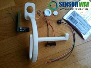 當(dāng)手紙架上的衛(wèi)生紙即將要用完的時候,發(fā)射器和傳感器就會通過上面的圓形黃燈發(fā)出警報。
