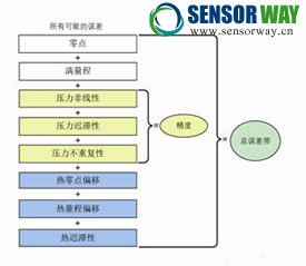 通常,制造商并不會在產(chǎn)品數(shù)據(jù)手冊上列出總誤差范圍,而是單獨(dú)列出各種誤差。各類誤差相加時(即總誤差范圍),總誤差范圍就會非常大。因此,總誤差范圍可作為選擇傳感器的重要選擇依據(jù)。