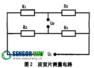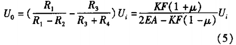 當(dāng)采用圖2所示的全橋差動(dòng)電路進(jìn)行測(cè)量時(shí),輸出電壓為: