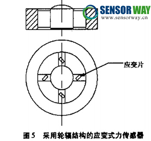 另外在實(shí)際測(cè)量中,被測(cè)力不可能正好沿著圓柱體的軸線作用,而總是與軸線之間有微小的角度或偏心,使得彈性體除了受縱向力作用以外,還受到橫向力和彎矩的作用,帶來非線行誤差。為了消除橫向力 的影響,可采用圖3所示的承彎膜片結(jié)構(gòu)。