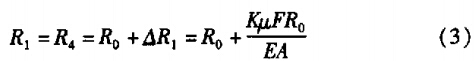 此時(shí),感受軸向應(yīng)變的電阻R1與R3也發(fā)生變化, 變化成