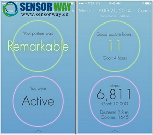 應(yīng)用程序方面,暫時(shí)僅支持iOS,Android版本在2015年才會(huì)推出。就像前面所說的,應(yīng)用程序并不具有自動(dòng)矯正或是姿勢(shì)建議功能,需要手動(dòng)設(shè)置自己的姿勢(shì)。然后,它會(huì)顯示你的正確姿勢(shì)保持了多久、另外也能顯示運(yùn)動(dòng)步數(shù)。應(yīng)用程序并不允許你設(shè)置目標(biāo),每一天最低的正確姿勢(shì)保持時(shí)間為4小時(shí)。另外,你還可以向左或向右滑動(dòng)界面,觀看此前的記錄。